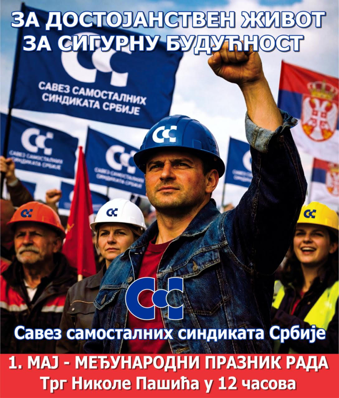 Za dostojanstven život i sigurnu budućnost je parola pod kojom ćemo se okupiti ovog Prvog maja, na Međunarodni dan rada, kako bismo zajedno ispisali budućnost i još jednom potvrdili našu ambiciju za postizanje društvenog napretka i jednakosti. I zato, članovi Saveza samostalnih sindikata Srbije, Beograđani i svi oni kojima je u srcu borba za pravednije društvo, dođite u petak, na Trg Nikole Pašića, u 12 časova.